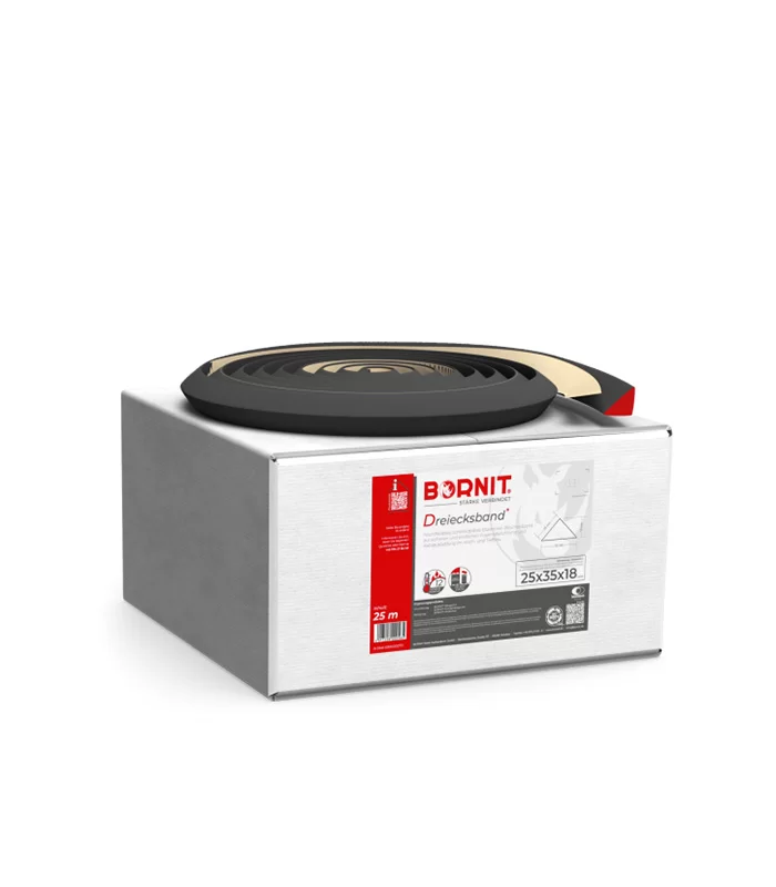 • BORNIT – DB (Dreiecksband) to nadtapiana i bardzo elastyczna taśma elastomerowo-bitumiczna służąca do bezpiecznej i prostej izolacji złącza ławy fundamentowej a ściany pionowej.