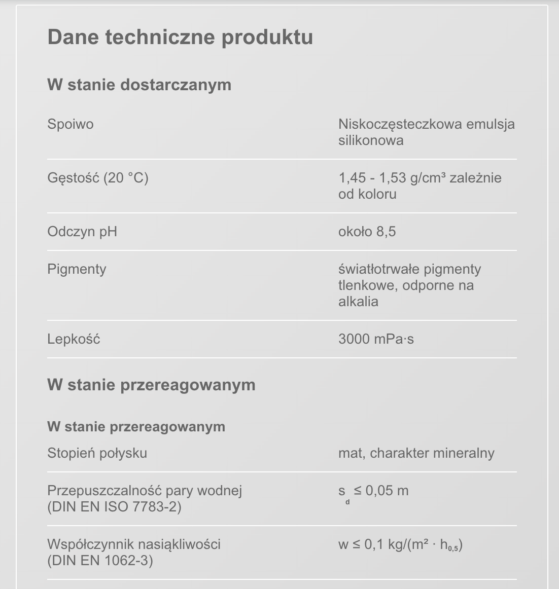 - Materiał hydrofobowy: w ≤ 0,1 kg/(m² h ∙ 0,5)