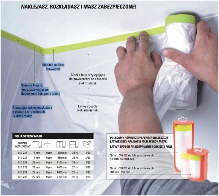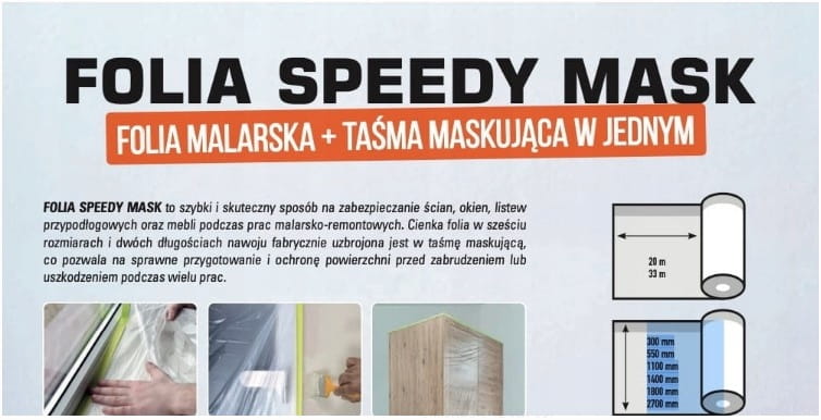 Folia malarska z taśmą SPEEDY MASK Motive 33 m x 1,1 m x 9 µm