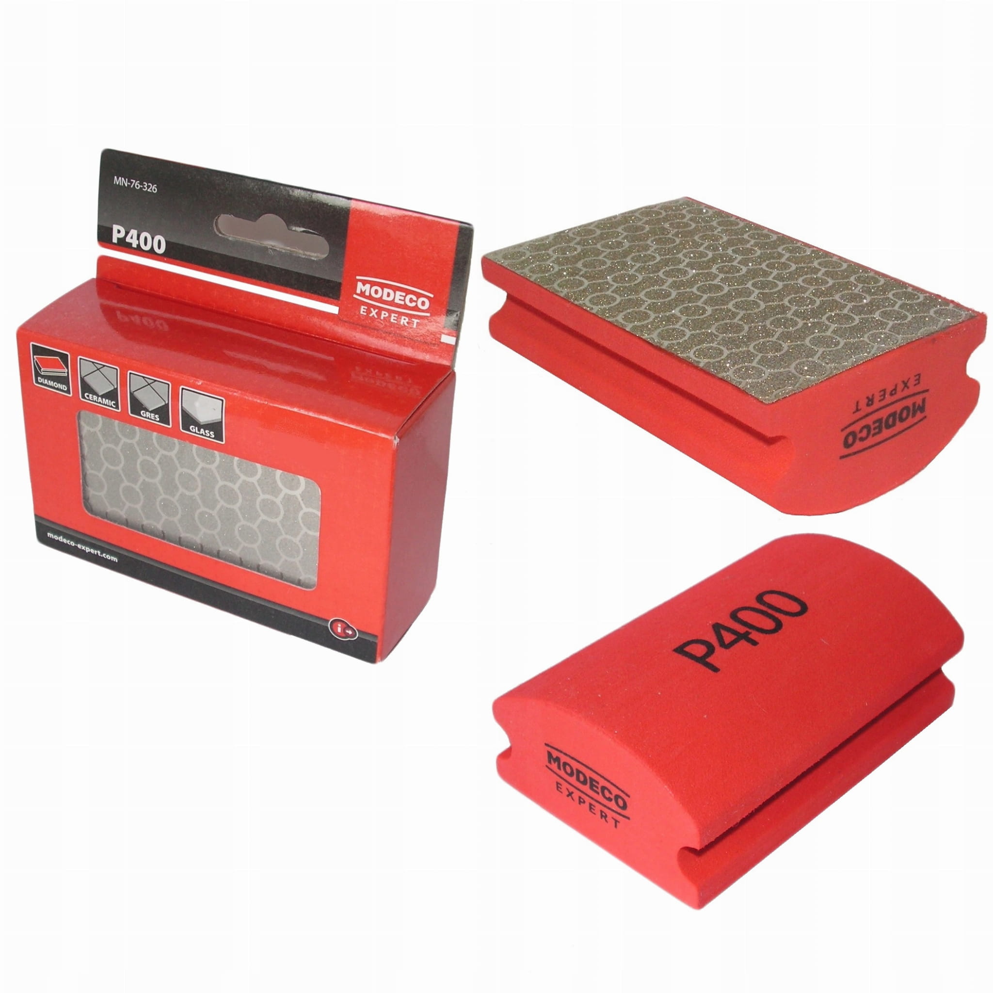 Gąbka, kostka diamentowa do płytek, gresu, granitu P400 MODECO EXPERT