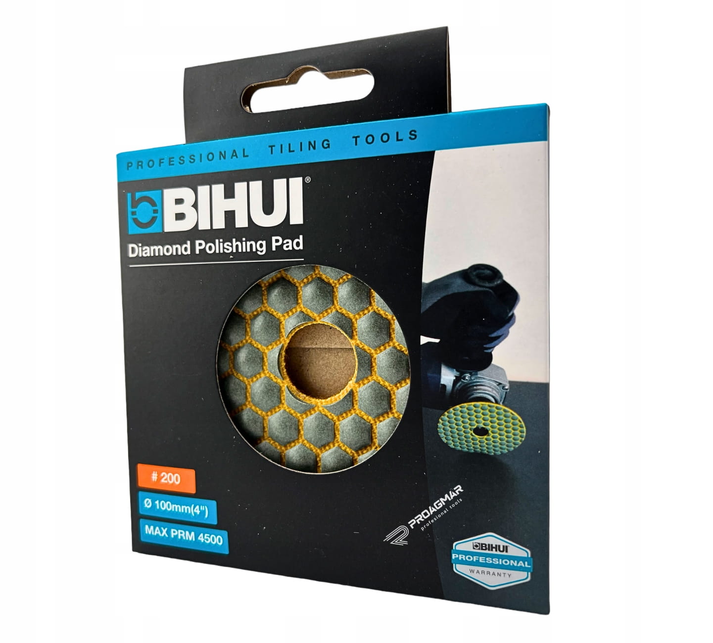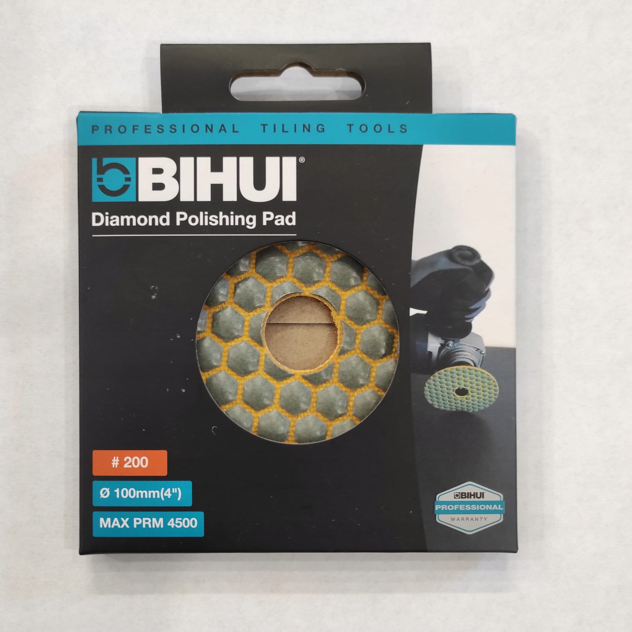 Diamentowy pad polerski BIHUI o średnicy 100 mm i gradacji 200 jest narzędziem przeznaczonym do szlifowania i polerowania na sucho różnych powierzchni, w tym granitu, marmuru, płytek ceramicznych, gresowych i betonu.