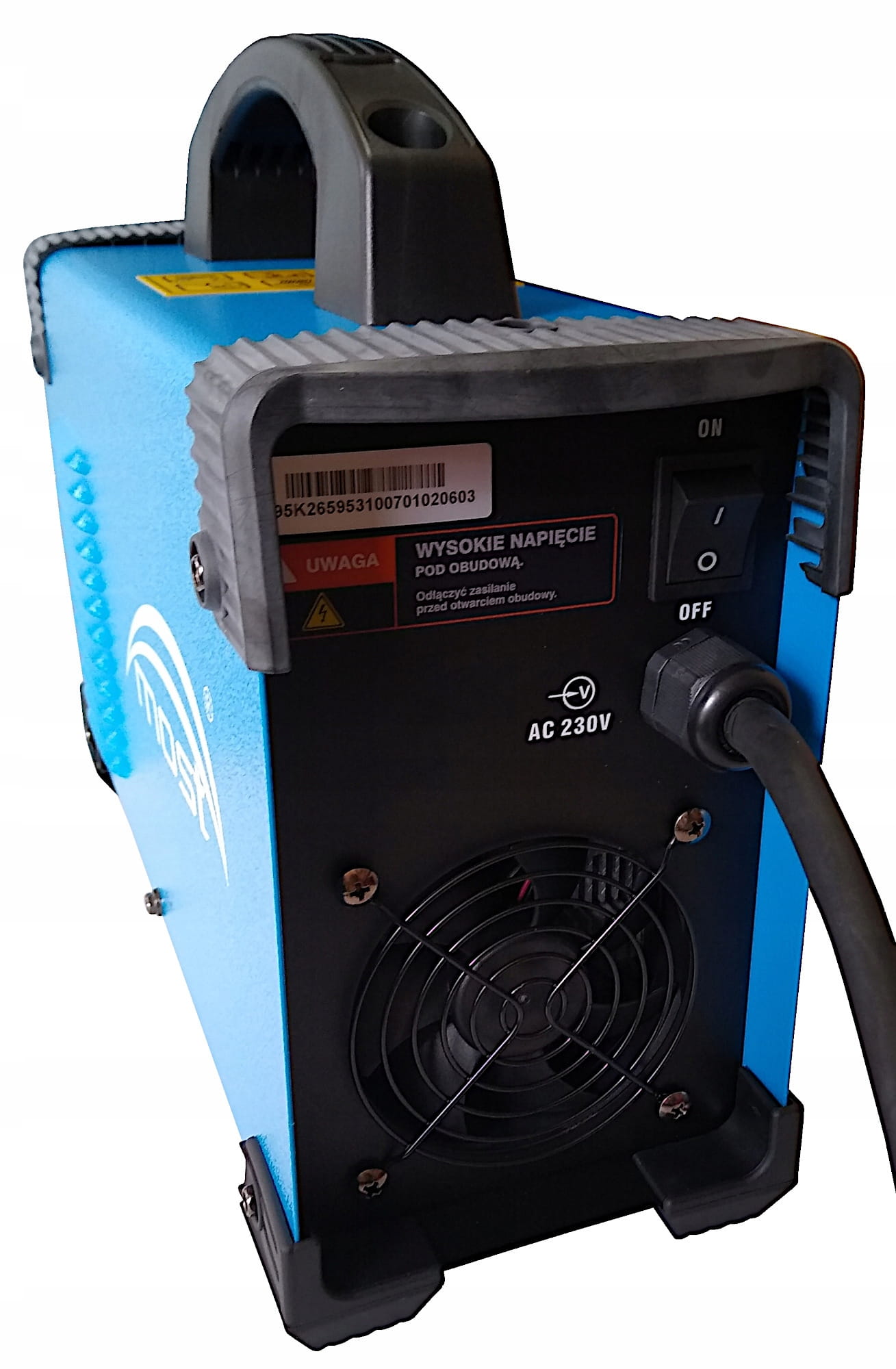 - Obudowa spawarki jest trwała i estetyczna, elementy z tworzywa na jej obrzeżach chronią przed uszkodzeniem w razie upadku.