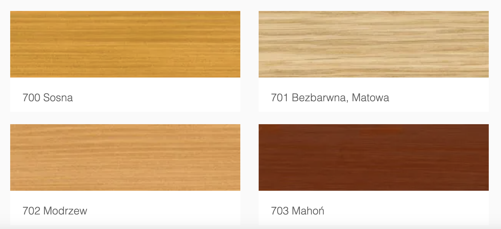 - Kolor finalny zależy od rodzaju drewna, sposobu jego wyszlifowania, suszenia, sposobu malowania. Próbki robiono na drewnie sosnowym.