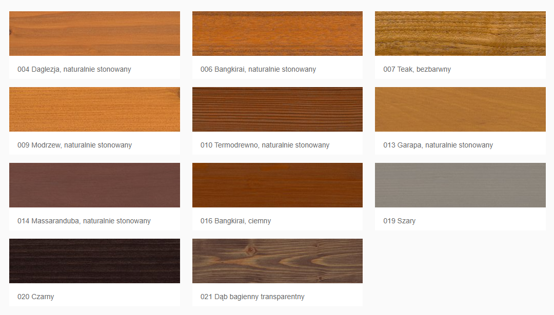 - Po wyschnięciu nanieść drugą, cienką warstwę. Jeżeli pożądany jest mniej intensywny efekt kolorystyczny, jako drugą warstwę należy nałożyć Olej Antypoślizgowy do Tarasów. Nie dotyczy Oleju tarasowego: Teak (007).
