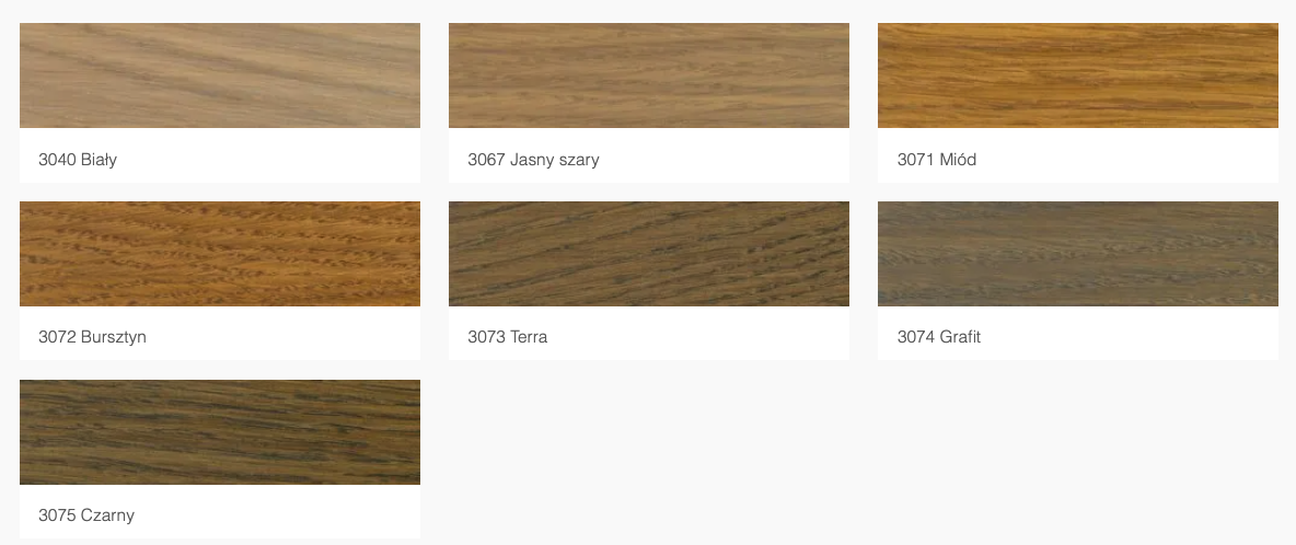 Wykończenie: Transparentne kolory pozwalają na zachowanie widocznej struktury drewna, nadając mu elegancki, matowy lub półmatowy wygląd.