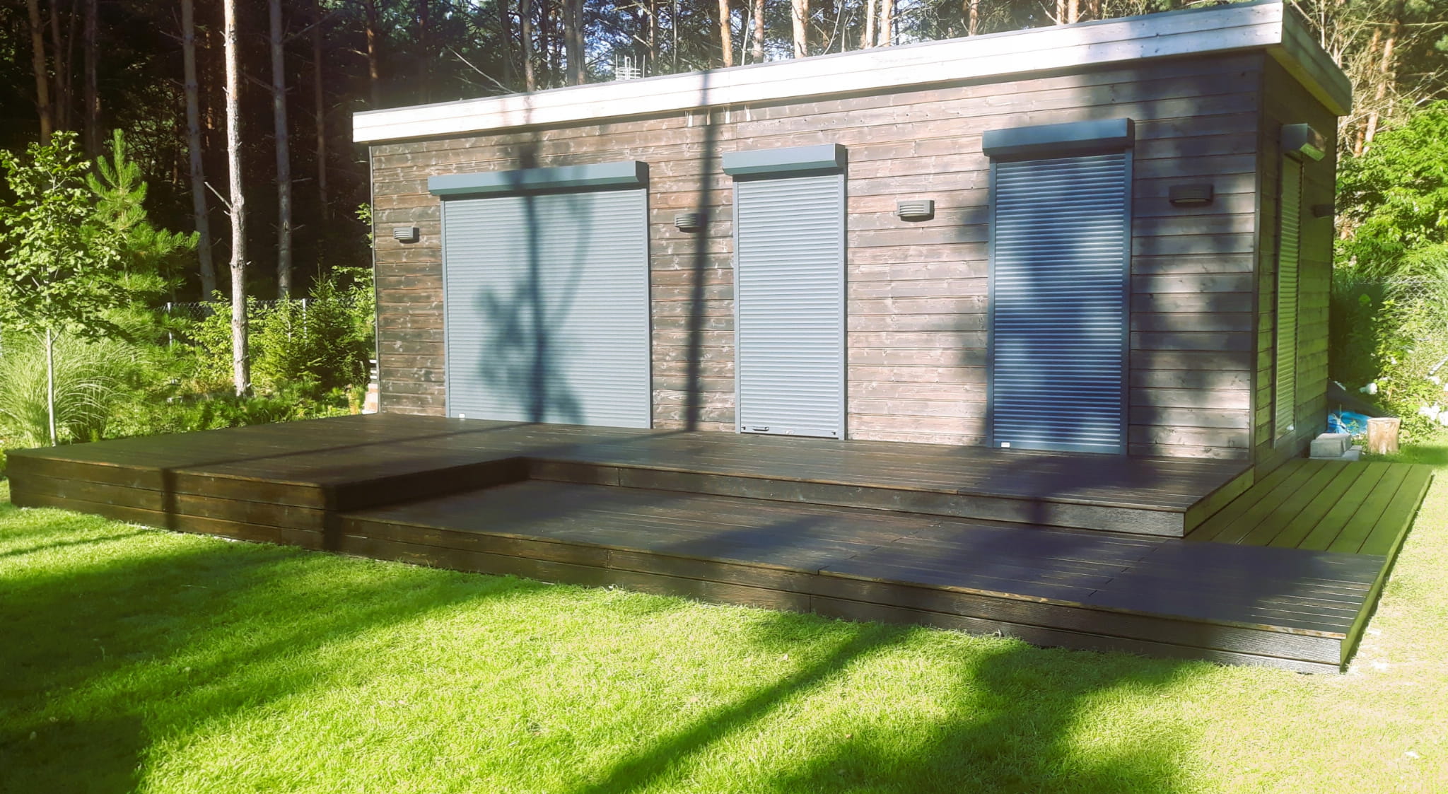- w trakcie zimy oczyszczać drewno ze złogów śniegu, bądź osłonić je jakimś tworzywem, aby uniknąć czarnych przebarwień,