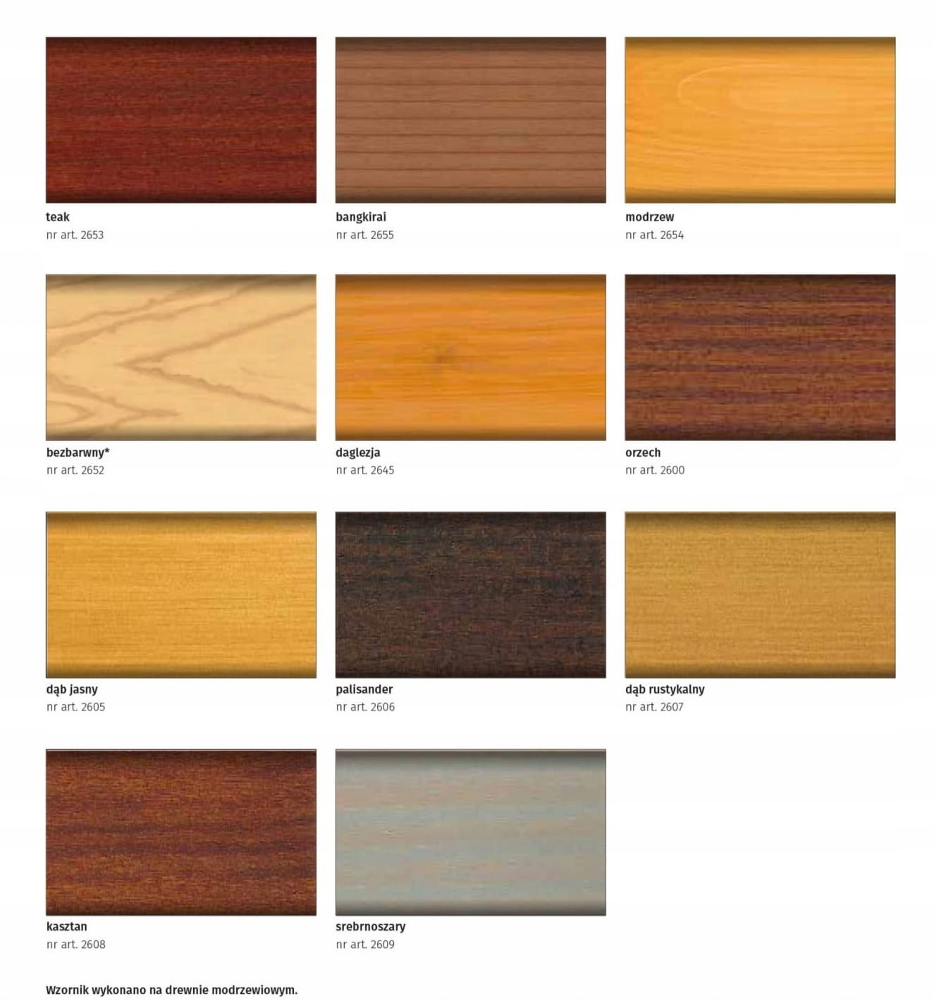 - do wielu gatunków drewna m.in. drewna tekowego, bangkirai, massaranduby, iroko, dębu, sosny, świerku, modrzewia i daglezji,