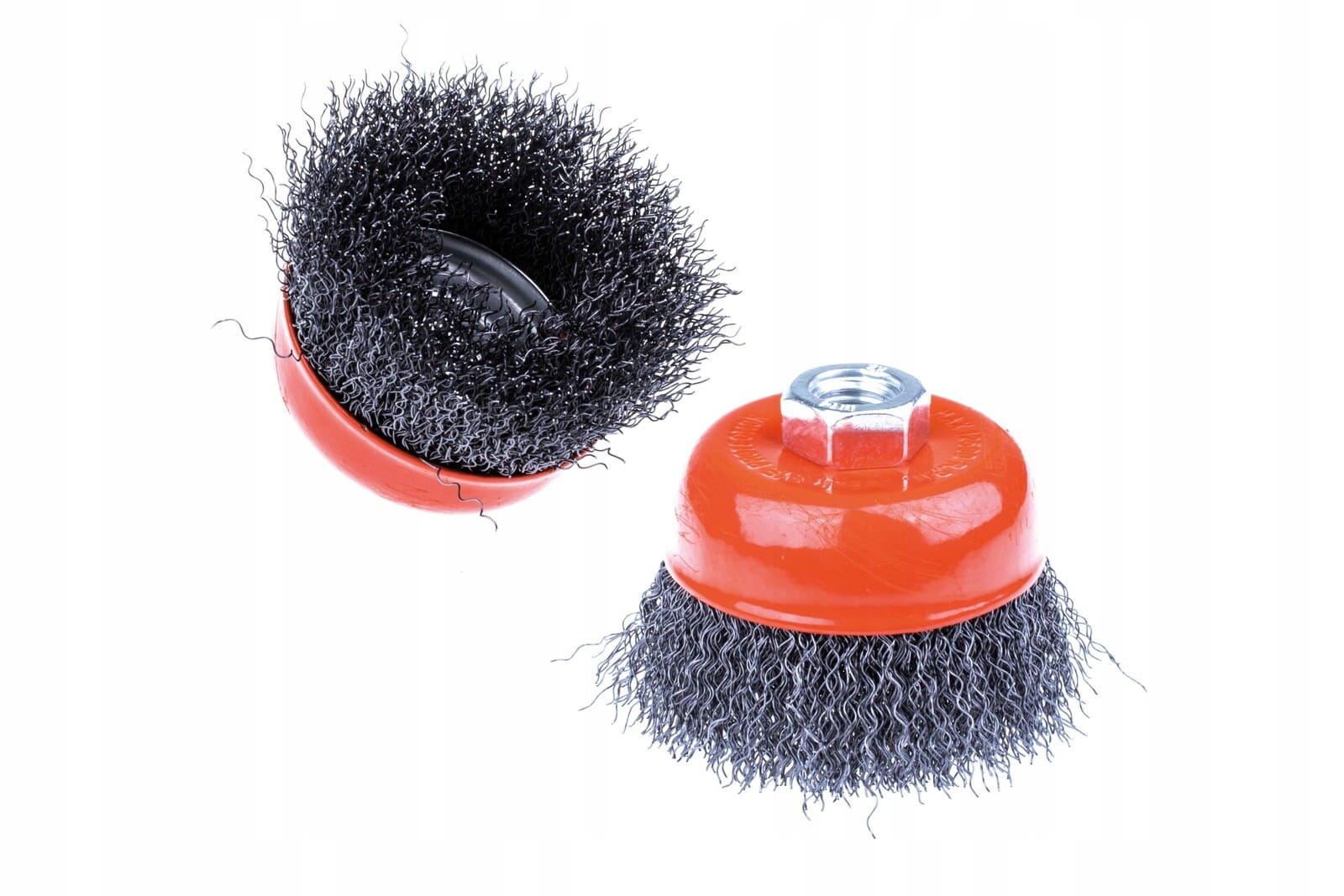 Szczotka doczołowa przeznaczona do pracy ze szlifierkami kątowymi, wykonana z drutu stalowego, karbowanego.